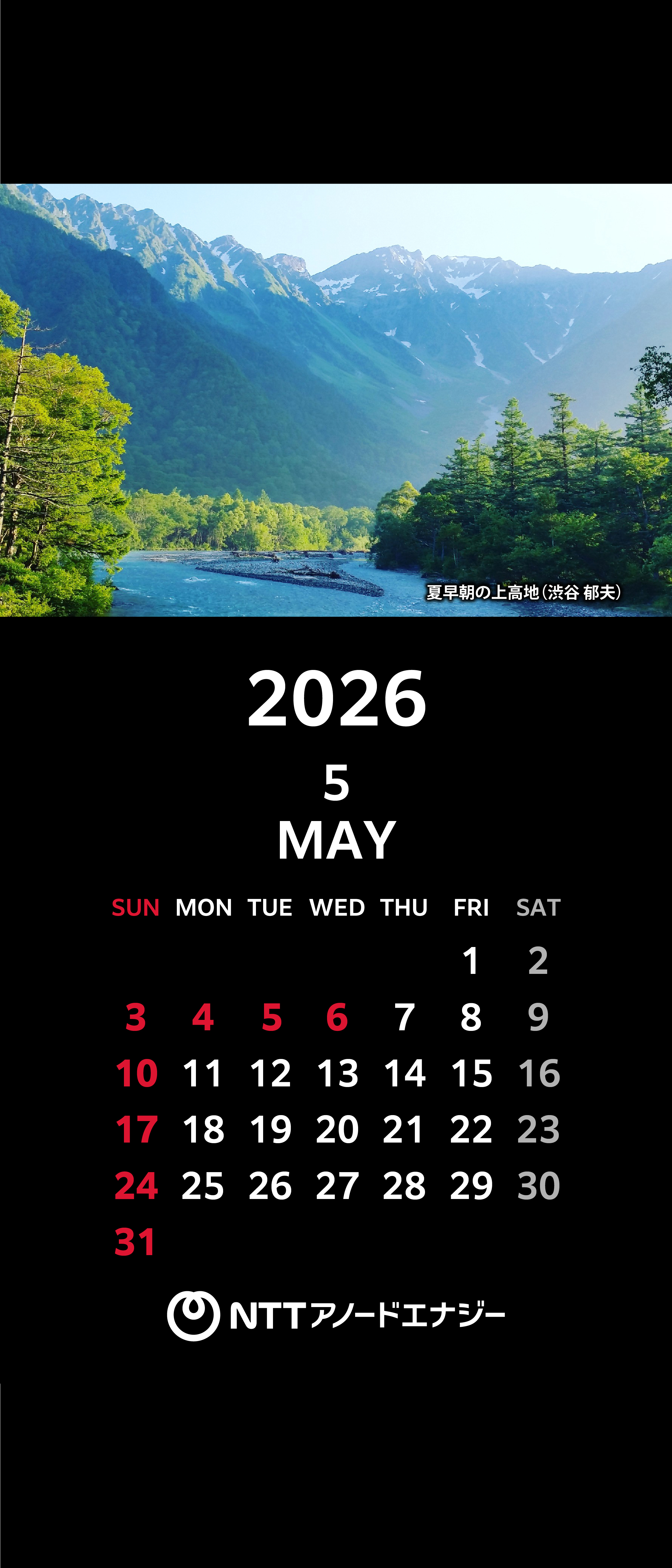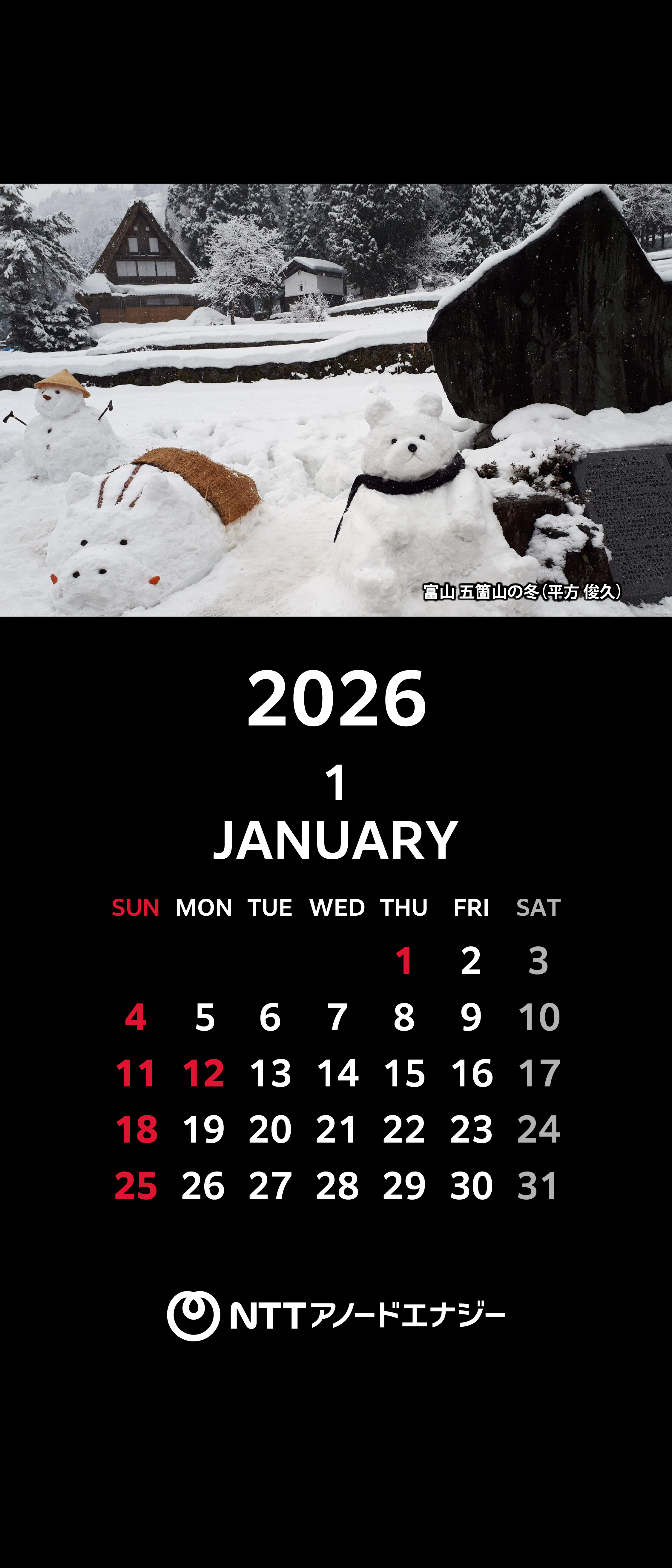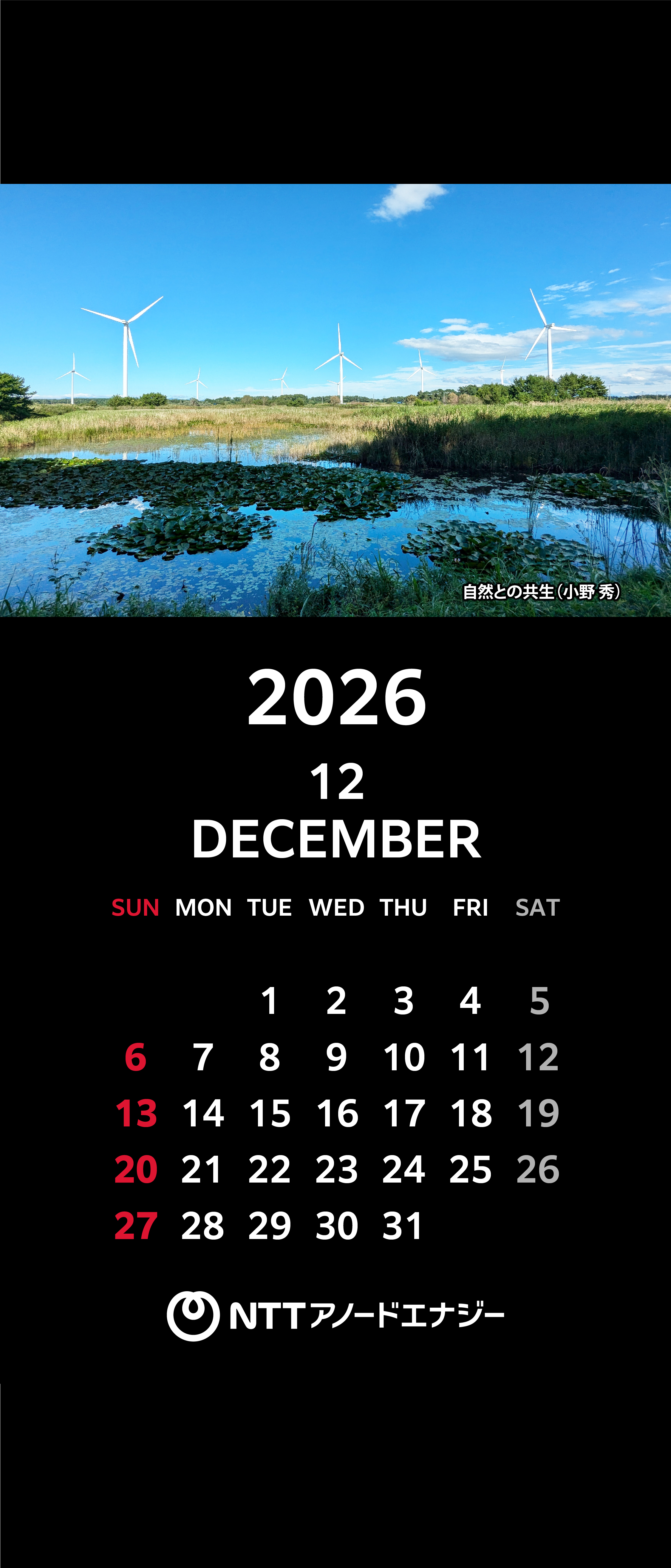 NTTアノードエナジーの2026年カレンダー壁紙2種を、無料でダウンロードできます。